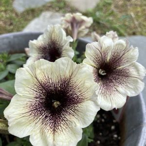ペチュニア カプチーノ 花びらの縁に紫色が入りめっちゃ綺麗😍