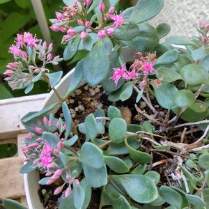 こんにちは😃 今日は、朝のうちは晴れていましたが、お昼くらいからだんだんと曇って来て、予報どおり3時過ぎから雨がポツポツと降り始めました。予報では、あまり台風の影響をうけなそうなので、植えていない苗をまとめて、風があたらない場所に移動したり、高さのあるものは、棒にくくりつけたくらいの簡単なものだけにしました。 今日のpicは、ミセバヤ。もう10年以上同じ鉢に植えたまま☆…たぶん、もう土もほとんど無く、根がぎっしりだとおもうのですが、なんとか毎年咲いてくれるので、放置しちゃってます😅 今年も蕾がたくさん付いてます。でも、葉っぱの色が…あまり良くないですよね😔 以前も投稿した時に次は植え替えますって言ってたけど…今回こそは、植え替えもしくは、挿し芽で更新しようかと思ってます。
