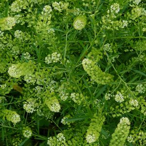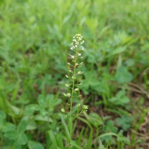 マメグンバイナズナ (豆軍配薺) アブラナ科 マメグンバイナズナ属 5~6月 20~50cm 越年草 帰化種 花は白色の十字形花で花径約3mm 果実は円形で扁平 ナズナの果実と比べて小さめです😊 ✽ 『頑張って』『健気』『応援』