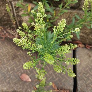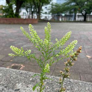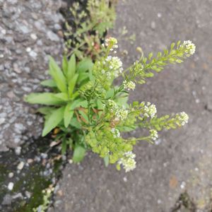 用水路の柵の中に1本だけ生えていたマメグンバイナズナ。 えっ、コンクリートの割れ目から生えてる‼️