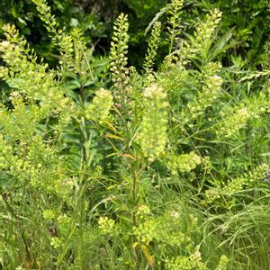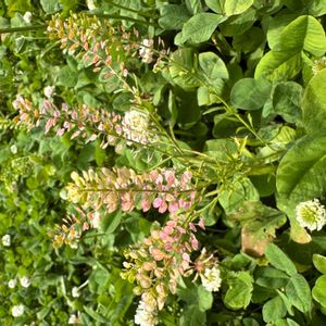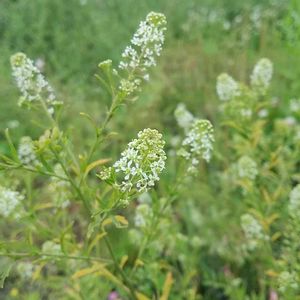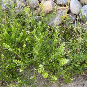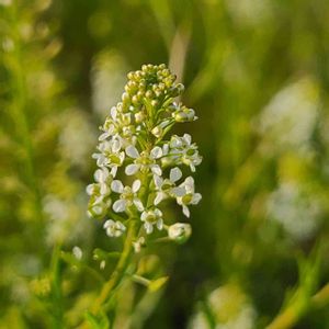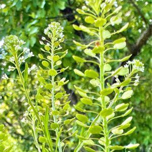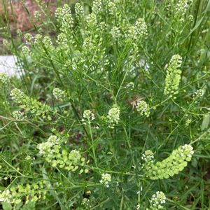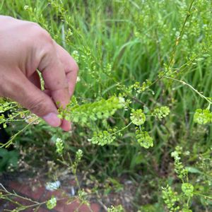 マメグンバイナズナ(豆軍配薺) 春の七草(ペンペン草)の別名で知られているナズナの近縁種です。 グンバイナズナとマメグンバイナズナの違いは グンバイナズナの実 10〜15㎜ マメグンバイナズナの実 3㎜ほど 京成バラ園で群生していました。 さわさわと爽やかな姿🌿🌿🌿 ピンクに色付いた実が可愛い💕 アブラナ科 マメグンバイナズナ属 原産地: 北アメリカ 花径: 3㎜ほど(緑白色の4弁花) 開花期: 5〜6月 別名: 西洋グンバイナズナ 神戸ナズナ 花言葉:「頑張って」 利尿や鎮咳などの薬効あり。