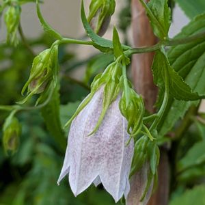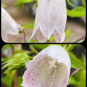 カンパニュラ竹島 一番花はほぼ虫に食べられて鑑賞できず⤵️ 待望の二番花を存分に楽しんでいます😊🎶 釣鐘型のお花、とっても可愛い🍀
