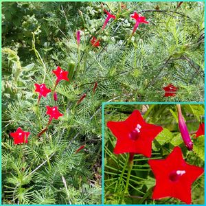 この蕾は何かな? よく似た花にキルタンサス マッケニーがあります。花の色合いは、オレンジ色、ピンク、黄白色と同じような色合いです。 でも、葉が全然違います。花の大きさも違う。 この花丁字は、キルタンサスと科目、属名も違ってました。 1枚目、2枚目 赤花の花丁字、ラッセリアです。 新宿御苑の温室に行った時に、この色合いのラッセリアが垂れ下がって、たくさん筒状の花が咲いてるのを見ました。 我が家では、冬は室内で管理してます。 3枚目、4枚目 白花に赤いラインが入ってる珍しい花を発見👀 5枚目 今は、黄白色の花の方がたくさん咲いてますが、金曜日の蕾達のために、探しましたが、蕾が1つもなかった😅 ✍️ 『ハナチョウジ(花丁字)[別名:ラッセリア、コーラルプラント] オオバコ科ハナチョウジ属 メキシコ原産で、鉢植えなどで観賞用に栽培される常緑低木。 樹高は0.5-2m。葉は退化して鱗片状になり、トクサのように見える茎はよく分枝して垂れ下がる。茎は先端に向かって細かく分枝し、花はその先端に付き長さ2-3㎝の朱赤の筒状。1本の主枝に100個を超える花が付く。花冠の先は4裂する。花色は朱赤の花は、桃色や黄白色の品種もある。 花期は5-10月。 果実は蒴果。 ※ 名は、花を横から見たときに丁の字に見えることから。』 🏷金曜日の蕾たち
