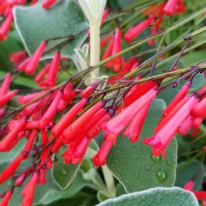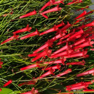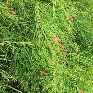 ハナチョウジ(花丁子) コーラルプラントはトクサに似た葉・茎に赤い筒状の小花を咲かせるゴマノハグサ科 久しぶりに見に行ったら、沢山ツンツンしてました。