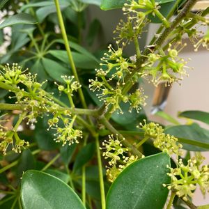 20年以上も手間もかけずに育ってくれているカポックに初めて花の蕾が付きました。 花が咲くなんて思っていなかったので意外でしたが、調べると10年以上経って初めて花が咲いたなんて話も有るようですね。 もう少しで開花しそうです。
