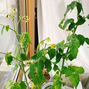 ミニトマトの花。 実は夏場の長雨で一気に枯れたトマト。 処分した腐りかけた実から 発芽したものがここまで育ち花がつきました! 株ごとカビ病にやられたのでまだ土壌殺菌する前発芽したので どうしても病気には弱いらしく下葉はハモグリバエ幼虫に食い荒らされた跡が。 まだ日中30度超えるのですが日照時間は短くなる中結実するのか? 実験しているような気分φ(´・ω・`)メモメモ