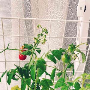 室内で水耕栽培ミニトマト🍅 色付き実り始めました❣️ やっぱり背丈は50cmを超え、 "支柱のいらないミニトマト"でも 支柱は必要だと思います😌 で、支柱の代わりに菜箸😅💦