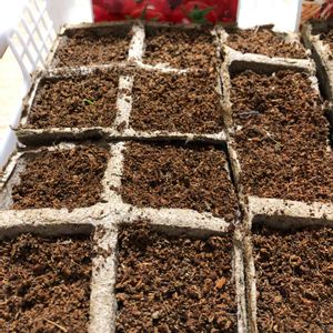 2/23に蒔いたトマト🍅の芽が出始めた🌱 手前2列大玉 麗夏 中2列中玉 フルティカ 奥6ポット 1日遅れで蒔いた ミニトマト ルビースイート(仮) 大玉、中玉の、タネは前日から浸水 ミニのタネは芽が出やすいようにとんがってる所をちょこっとカットして1時間ほど浸水させてから蒔いてみた 室内窓際プラスチックケース蓋付きに入れて