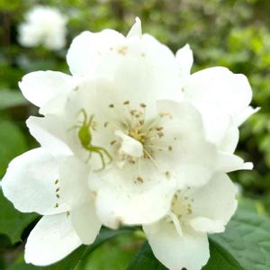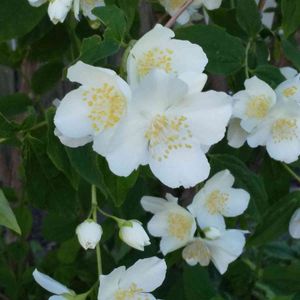 🌱🌼バイカウツギ(梅花空木)🌱🌼 朝活より~🚶♀️🎶 バイカウツギは花の形が梅の花に似ていて、枝が空洞なことや枝葉の特徴がウツギに似ていることからバイカウツギという名前が。 中国では、山梅花と呼ばれている。 バイカウツギの英名のMock orangeとは「オレンジまがい」という意味で、花がオレンジに似た香りがすることから付いたそうです。 バイカウツギの花色は基本的に白ですが、まれに花びらの中心がピンク色のものもあります。また、咲き方には一重咲きだけでなく、八重咲きの品種もあります。 ベル・エトワール、バージナル、イエローヒル、イノセンス、スノーベル等沢山種類がありますね~😵 他の方々の投稿を調べてみたいと思います💕