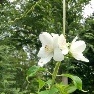 バイカウツギ アジサイ科 別名 サツマウツギ 花言葉「思い出、気品」 散歩🚶♀️で出会った白い花仄かな香りに誘われてたたずみました💓💮美しい✨