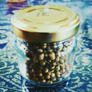 パクチーの種です。ビンに入れると、謎の高級感がすごい(笑)
