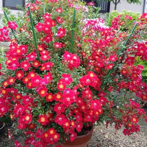 こんにちは😃 お庭のバラ🌹満開です。 去年買った姫バラ🌸が株も大きくなって満開です🌹