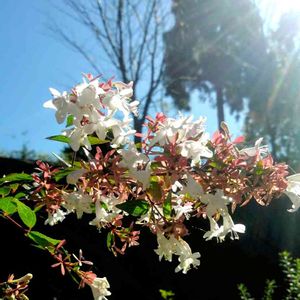 「ハコネウツギ(箱根空木)」 白、淡いピンク、濃いピンクの花が混ざって咲いていました。 蕾の時は白く、次第に濃いピンク色に変化するのだそうです。不思議……