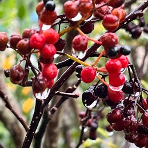🏷 真っ赤な火曜日 🏷 雫倶楽部 🏷 0の付く日は雨粒の日 参加させて頂きます 今朝の庭の 実山椒 鳩 ヒヨドリ すずめたちが食事に来ます