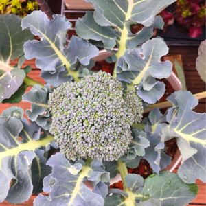 ベランダ育ちのブロッコリー🥦 手で楽に一掴みできるくらいの大きさしかないですが...すでに花が咲きそうで黄色い花びらがチラッと幾つか見えたので収穫しちゃいました🤣ひゃ〜💦