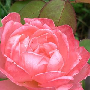 🏷水滴の水曜日 🏷水曜ローズショー 🏷ピンクワールドへ ようこそ 雨上がりのメイアンお嬢様は、オレンジがかったピンク色で美しく咲いています🌹🌿💗 Mademoiselle MEILLAND メイアン家の女性達へのオマージュとして捧げられたバラです。内側から輝くような明るい色の花が、温かく包み込むように咲きます。シュラブ状に伸びる枝は、誘引すればつるバラに、短く切ると春に木バラのように咲きます。 2017年ラターチタ金賞&芳香賞、他。 花色:オレンジがかったピンク色 花径:12~14cm 花弁数:60~80枚 花形:丸弁ロゼット咲 樹形:半横張り性 樹高:1.5m 香り:中香 作出:2016年 メイアン(フランス)