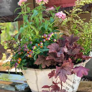 もうひとつのお誕生日の記念に作った 寄せ植え。 買ってきたままで だいぶお待たせしてしまったので、 ジニアの花が少なくなっちゃいました💦 何気に好きな💕 夏の強い日差しに出来る 濃い影の中。 お花は 綺麗に写りますね✨
