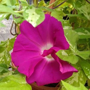 💠今日のお花、朝顔💠 大きなピンクの朝顔の花、斑入りの葉で綺麗です💕