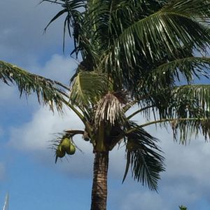 海岸沿いの椰子の実🌴実が付いているの 初めて見ました。😊