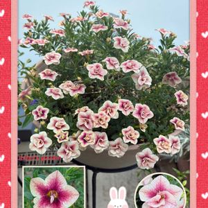 ホーリーカウ以外のカリブラコアはパラパラしか咲かない😢 ①ホーリーカウ 気温が高く真っ白になっちゃった、3回目の満開🌸 最後の切り戻し、秋は咲くか微妙なところ… ②ホーリーカウ、ストロベリー ③ダブルミルクレープ ④プチホイップレッド