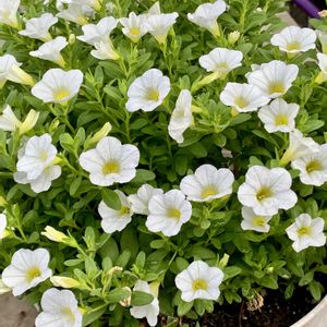最高33°c/最低25°c 第4期サンフラアンバサダー *𖥧𖤣𓇥成長記録𓇥𖤣𖥧* 3連休中日🌞 暑い中元気で可愛い😍 アンバサダー苗をご紹介します💕 ミリオンベルハンディこんもりホワイト ミリオンベルアンティークピーチ ミリオンベル達は酷暑でも元気🤩 場所問題からあまり大きくせず 切り戻し✂️透かし切り✂️ コンパクトにかわいくまとめてます😉 何とかこのまま酷暑を乗り越えたいです👩🌾