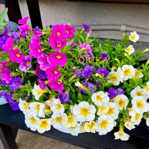 ペチュニア😊 ①るりいろ風車 ベランダの暑い中良く咲いています ②ミリオンベル ピンク 冬越ししたペチュニア ③ペチュニア姫物語 7/7満開になったので玄関へ移動 7/17何かに食べられボロボロ😱 (夜懐中電灯🔦で探したらモンシロチョウの幼虫🐛みたいなのがいた😡) 7/25ベランダに移動して切り戻し、療養中です🏥