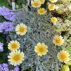 週の初めは 元気にビタミンカラーで💛💛💛 ①② PWガザニア ビースト シルバーフォックスと PWスーパーベナ アイストゥインクル ③④ サントリーフラワー ミリオンベル イエロー 4年目、冬越し組さん達 さすがブランド苗ですね🤗