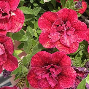まん丸選手権❣️今まあるく育ってるペチュニア類、優勝はピンクのカリブラコアかな🌺 左のハッピーシャワーはいまから咲いてはくるけどふたこぶ🐫です😹 整ってくるかなぁ💦 しかし、どの子もこのくらいの大きさのままの方が可愛いなぁ。