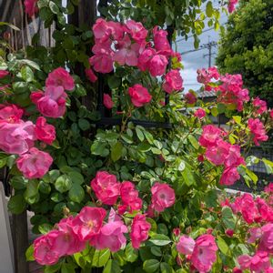 バラ オマージュ・ア・バルバラ 開花✨ 我が家のバラの一番最後 花びらのベルベットっぽさ 伝わるかしら? 背丈が2mくらいになった 四季咲きで夏も冬もずっと咲く 我が家で一番強靭なコ