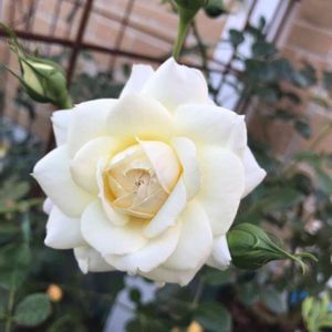 つるバラのモンジャルダンエマメゾン🤍 蕾が膨らんで来ました😌 余り花付きがいい品種ではないのかなぁ?