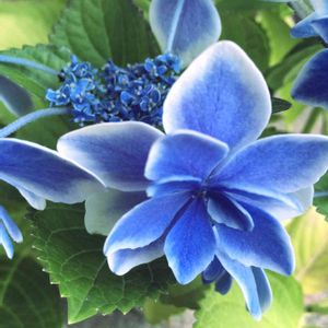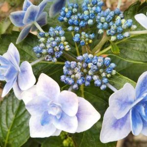 こんぺいとうが咲き始めました💙 ブルーと白の縁取りが隣同士で好きな物集めみたいな…😆 カシワバアジサイ ハーモニーがハートに見えます〜💚可愛い〜🥰 これからまた☔️の予報です〜 紫陽花にはいいのかな😉