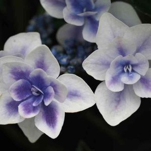 額アジサイであることはわかりますが、装飾花の模様が特徴的です。花の名前を教えてください。