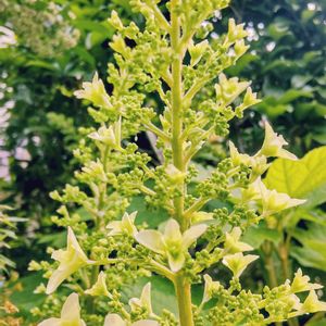 晴れの気持ちいい朝です。 我が家の庭にも花芽を沢山付け始めてます。 【八重咲きカシワバアジサイ】【オルレア】【万年青の花】。
