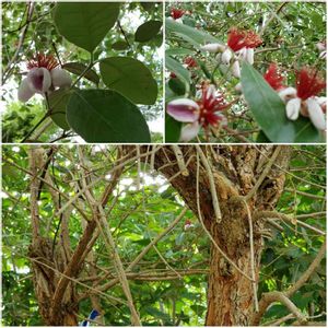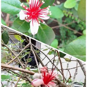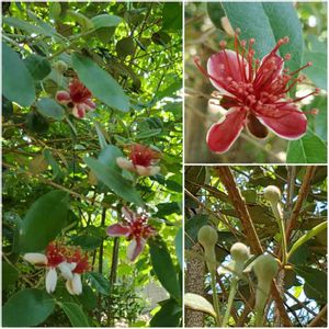 父庭にフェイジョアの花 なんか色々ある🤭 この木は ひいおじいちゃん( ´灬` )ノ が植えたらしい
