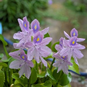 お早う御座います〜☔💦 雨台風接近中‼️ 昨夜から☔⚡️降り続いています… 雨に打たれながらも素敵に咲いているホテイアオイです ✨仲良しミックス親金魚です〜大きく成長5匹 ✨その子供達…今年3月に卵孵化した14匹です ✨熱帯魚…グッピー、ミッキーマウスプラティ、ヤマトエビ1匹、ネオンテトラ+カージナルテトラ4匹、コリドラス2匹、メダカ子供2匹、熱帯魚ベビー5匹で全部で29匹が仲良く平和な水槽です