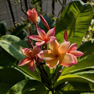 お早う御座います〜☀ 爽やかな朝ですね🎶 今日のお花プルメリアです 去年欲しかったプルメリアを処分セールでお迎えしました〜 今年こんなに豪華に鮮やかに素敵なブーケに成長しました!!👏🥰🎶🎉🎊⤴️⤴️ ビックリ‼️長期間変化し現在に至っています✌️🥰🎶 初めての満開から順次…今朝のプルメリアまで📸upしました👍😃✨ 癒されてね〜🙋💞