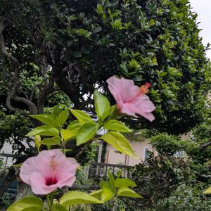 こんにちは〜☀ ハイビスカス🌺が風にも負けずに頑張る姿見てね👏😃 葉っぱや花の色合いは薄いが…猛暑に打ち勝つパワー💪 パチリ📸!! 愛おしくなりました〜🙋💞