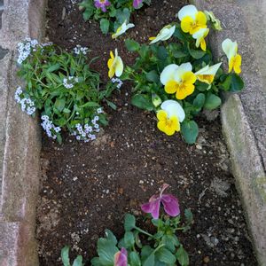 やっと昨日お花の植え替えをしました😊 ①玄関前のビオラとアリッサム ②ブルーサルビア・マリ-ゴル-ド・ケイトウ 姫ヒオウギも🌱がたくさん顔を… 秋から頑張って咲いてます🥰 ③ビオラとパンジー 下のはリビングから見えるお花 ④主役はガ−デンシクラメンで両サイドは ビオラ💞 ⑤ラベンダー🪻・ガザニア・ドウダンツツジが真っ赤に紅葉🍁・ポツリポツリとなぜか(・・;雪柳のお花が咲いてます 🧚♀️