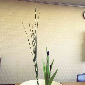 昨日のお稽古 縞莞とカキツバタの魚道活け 株の間を魚が泳げるように隙間あります🐳🐳🐳🐳🐳