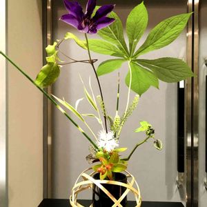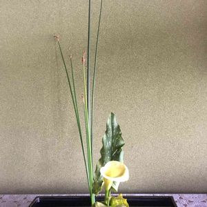 先日のお稽古 またまた 魚道活け 剣山1つを左右前後に分けて んなもん…できんちゃ‼️ てな事で 手直し後の作品 笑