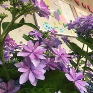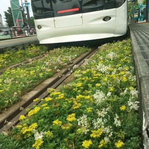 富山北口 路面電車の小花達🌸 雨上がりで喜んでるみたい🌈