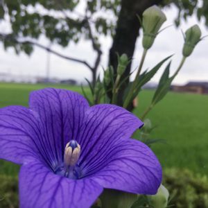 おはようございます。 本日 雲り 時々 小雨 ブンブン草刈りの音たててるのは 働き者の 主人 シットリしてる方が刈り易い との事… よろしくお願いします。 今朝 開きたての キキョウ 私と一緒で瑞々しいワ 🤣🤣