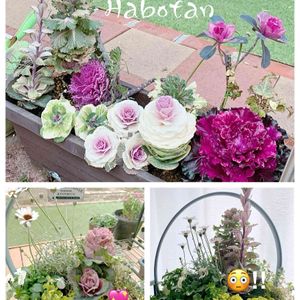 葉牡丹集合*\(๑• ₃ •๑)* 1番可愛いフリフリ葉牡丹がみるみる ニョキニョキして寄せ植えがお見苦しい😆 もう寄せ植えの葉牡丹全部抜いてプランターに適当に挿して集合してもらいました(*`・∀︎・)ノ☆︎.。. 集めたらコレはコレでいっかアハハヾ(≧︎∪︎≦︎*)ノ〃