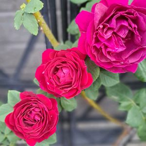 今日は暑いですねー🥵 我が家のバラも一気に開き始めましたよ!😚 【1枚目】安定の美しさ、ジュビレ・デュ・プリンス・ドゥ・モナコ。 【2枚目】紫のバラ、プラムパーフェクト。咲き始めは色が濃いですが、咲き進むと右下のように退色します。咲き方がゆるいクォーターになってるのかな? 【3枚目】ずーっと瀕死のまま、それでも毎年咲いてくれるオールドローズのスヴニール・ドゥ・ドクトル・ジャメイン。今年は今のところお花が2〜3個かな?💦💦 写真には出ませんが、深いボルドー色で素敵なんですよ☺️ 【4枚目】アンジェラ 【5枚目】グラハムトーマス つるバラも咲き始めました。 見頃は1週間後くらいかしら? これから毎日が楽しみです!😆💕