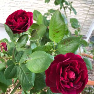こんにちは~☔ 前picの小路に咲くスヴニールドゥドクトルジャーメイン 青みがかった深い赤色が魅力のオールドローズ 2年前に植えたのですが今年やっと株に勢いが 出てきました⤴ 来年に期待です🎶 4/25撮影📷