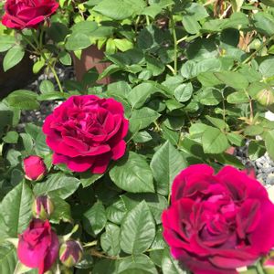 薔薇 スヴニールドゥドクタージャーメイン ビロード調の赤が素敵✨ 隣にちょこっとレッドレオナルドダヴィンチ 赤にも色々。