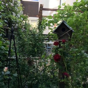 おはようございます(❁´ω`❁) GW終わってしまった(ノ_<) 今日も風が吹き荒れてます(。-∀-) どうなっちゃってるの〜⁉️ って事で、ピントが合わないので、全景です(〃ω〃) 巣箱さん横バージョン❣️ 奥の紫色の子はクレマチスさんです( ´艸`) まだ、ローゼンドリュフさんと、ギスレーヌさんが咲いてこない(。-∀-) さて、お仕事頑張りますかね(〃ω〃) 皆様も素敵な一日をお過ごしくださいね🍀💕