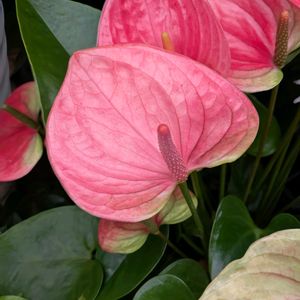 花散歩で✨ ❤️🩷❤️🤍🩷💗🩷💗♪ 1️⃣今日のお✨ アンスリウム 撮影 5/25 2️⃣柏葉紫陽花 素敵に色変したお花 見つけました 3️⃣ランタナと ナミアゲハ 4️⃣木槿 5️⃣リアトリス 今日も 笑顔😄で 過ごせますように💐 暑い日が続いていますが~☀🥤 楽しい週末を🍀