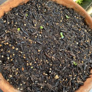 去年の秋、ブドウを食べたときに種を蒔いてみたら、春になって芽が出てきました! シャインマスカットか巨峰だけど、シャインマスカットは種が無かったような気がするから巨峰かな🤔 育つのかな〜🤔