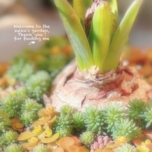 🍀ヒヤシンス🍀 昨年12月初めに植え付けたヒヤシンス💚 2ヶ月半?でこんな感じです💕✨ 周りの丸葉マンネングサちゃんが 可愛い新芽でヒヤシンスの開花待ってまーす “o(* ̄o ̄)o”ウキウキ♪🪴♡